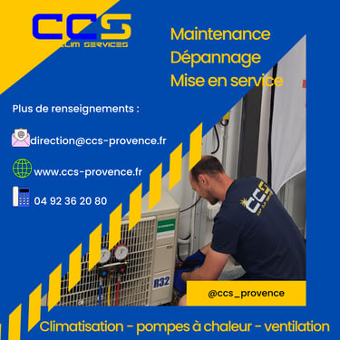 Aujourd'hui CCS forte de ses compétences assure la mise en service, l'entretien et le dépannage de vos systèmes thermiques, de traitement d'air et déshumidification (climatisation, pompe à chaleur, chauffe-eau thermodynamique, VMC double flux,...).